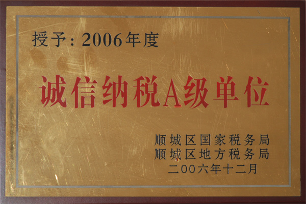2006年度誠信納稅A級單位